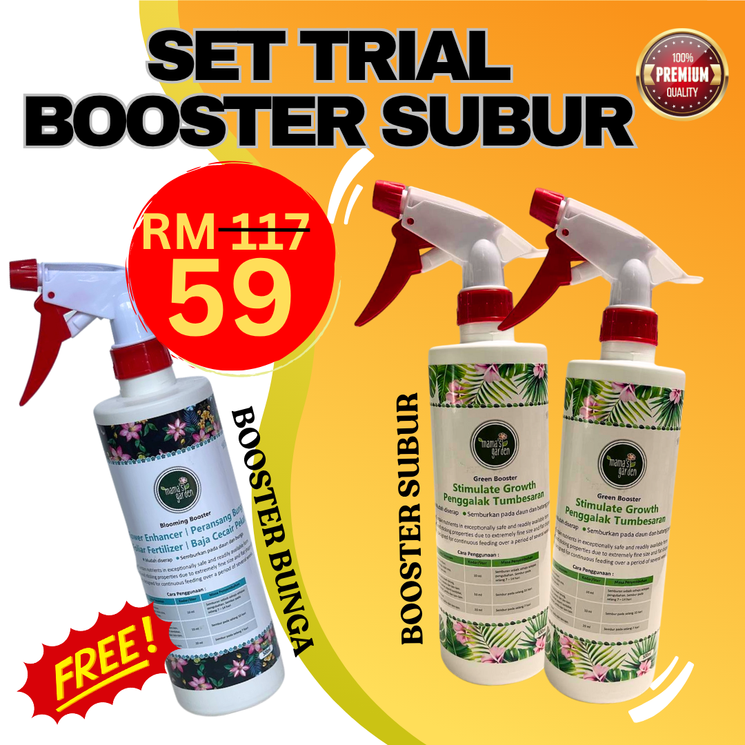 *PENAFIAN: Keberkesanan produk ini bergantung kepada kesesuaian pokok. Setiap hasil dari penggunaan adalah berbeza bagi setiapjenis pokok. Produk ini akan memberi kesan terbaik sekiranya pengguna mengamalkan dengan cara betul berdasarkan banyak testimoni yang diperolehi.